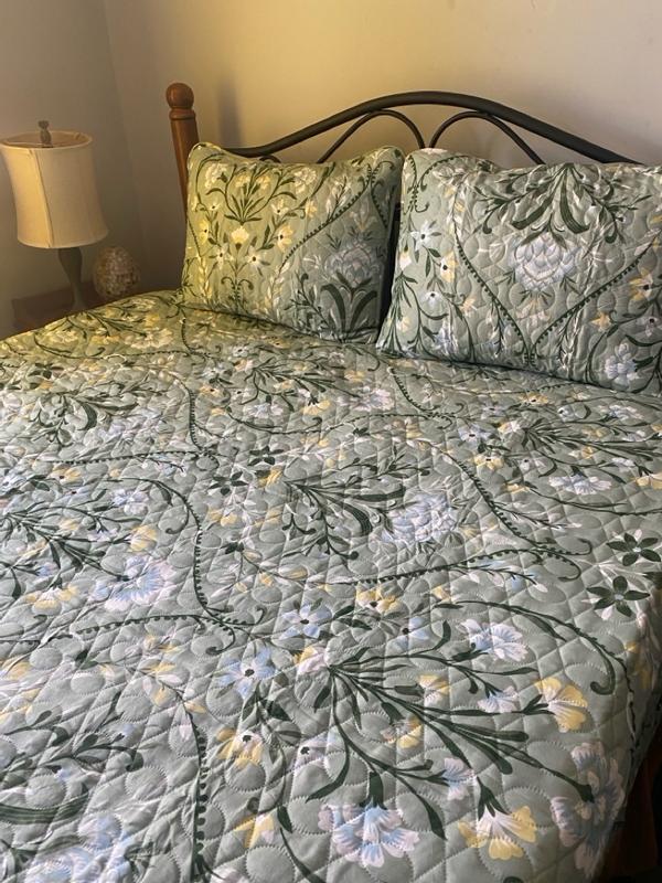 I ordered this quilt because I purchased another from this vendor and it was really nice. However, the quilt I received was green and gray !!! Not at all like the quilt pictured. Completely different color lot scheme. It’s ok but not a color I would select. Too much to try to repackage and send back. It looks nice and quality is nice. But don’t go by this picture on line.