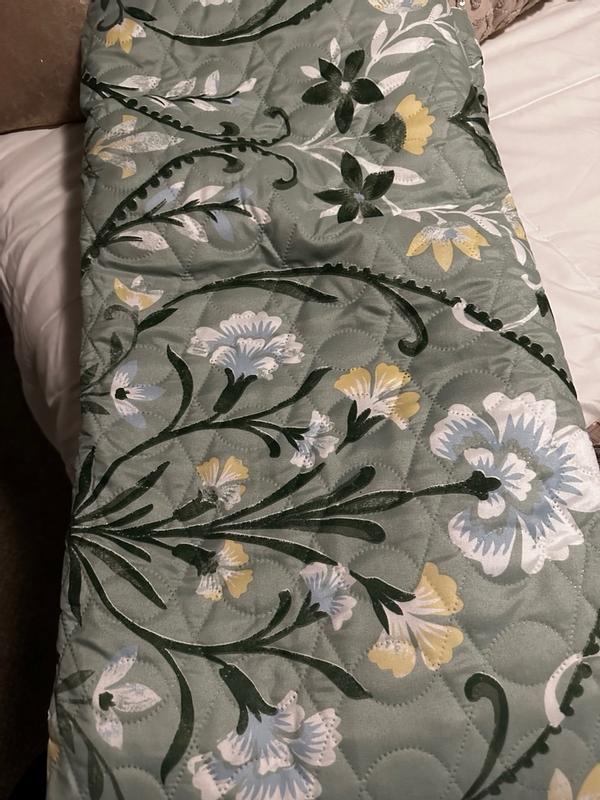 The material was terrible quality, and the colors were completely off. Instead of blue flowers as shown, the print was mostly yellow and green. It looked nothing like the photos. I returned it immediately. This was a big mistake — I don’t recommend buying it.