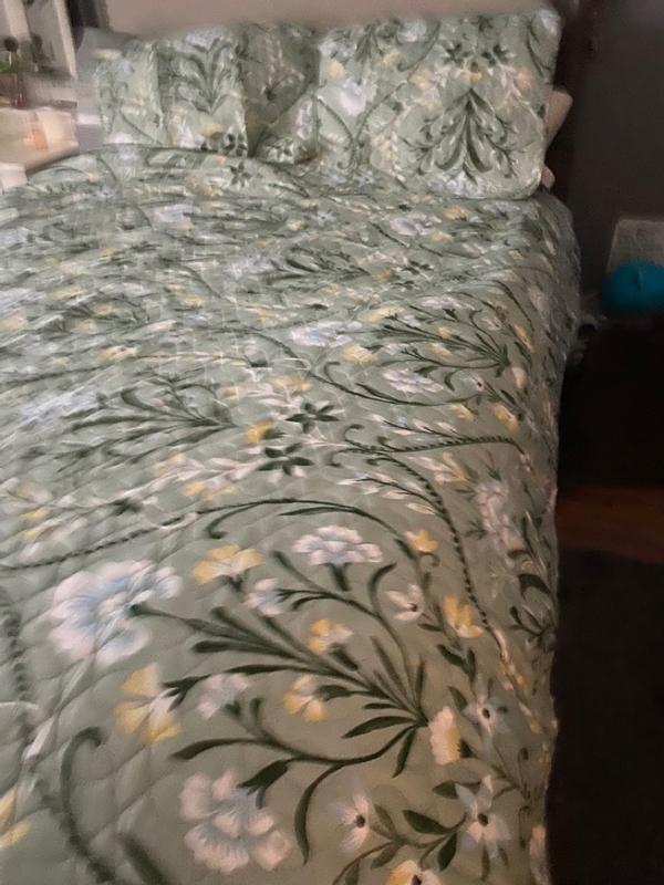 I should have paid attention to the other reviews. I was hoping I would be the lucky one and get the white with blue flowers quilt. but alas I got the same as most everyone else, the green quilt. Very disappointing. I returned it.