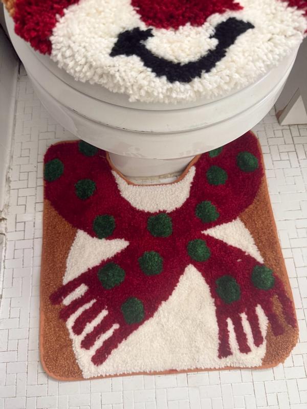 This bathroom rug set is absolutely adorable. The colors are bright and cheerful and the pieces themselves are well-made. The rug and seat cover fit perfectly and adds a perfect amount of Christmas to my bathroom. I just wish there was a nonslip backing on the rug, but I added my own underneath. Machine washable, but I hung to dry. If anyone is looking for a cheerful Christmas bathroom set I would say this is the perfect set for you and would definitely recommend it to a friend.