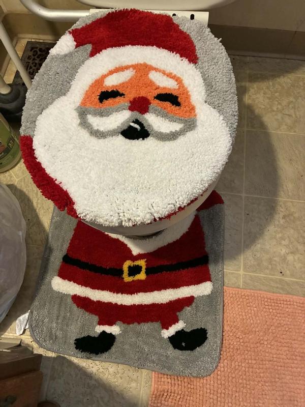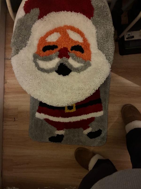 This is a simple to set up, light weight but cute bathroom decoration item! This Santa toliet decor arrived in time to display it & add a touch of Christmas to the bathroom this season! It is a oversized Santa head toilet seat cover & a thin, but soft lightweight floor mat. The mat goes around the front of the toilet base & looks like Santa's body! It was nice to keep feet warm & comfortable while using the bathroom (especially at night). It adds bright colors & a bit of Christmas spirit to any bathroom!