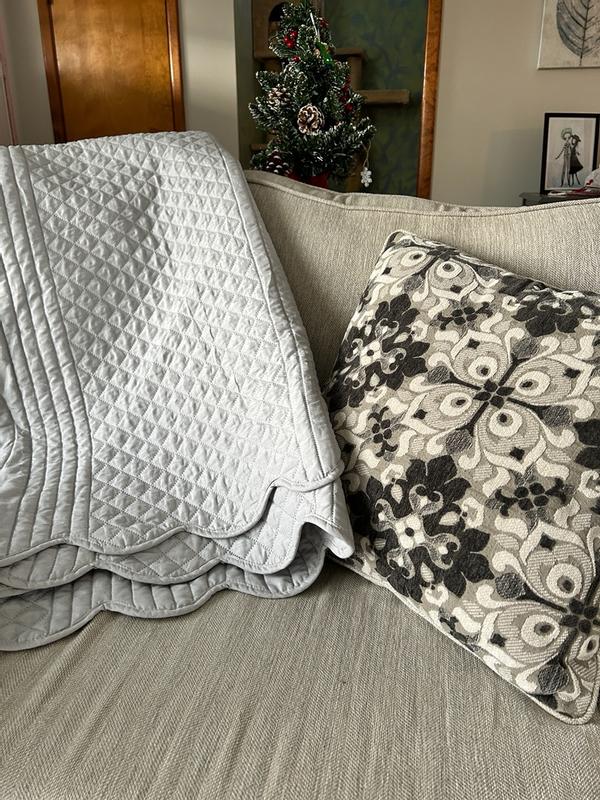 love this! it looks so classy and is so comfy. i love the scallop edge it adds a nice touch. also very affordable! its held up in the wash well. recommend!