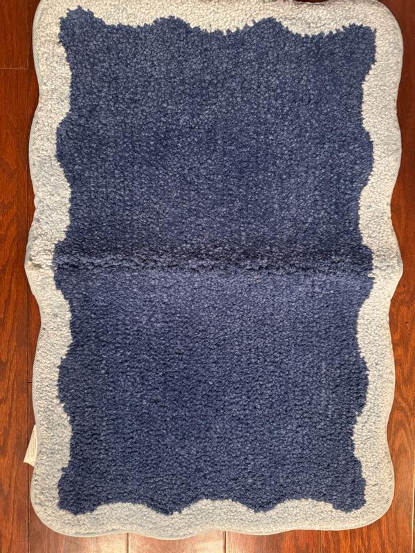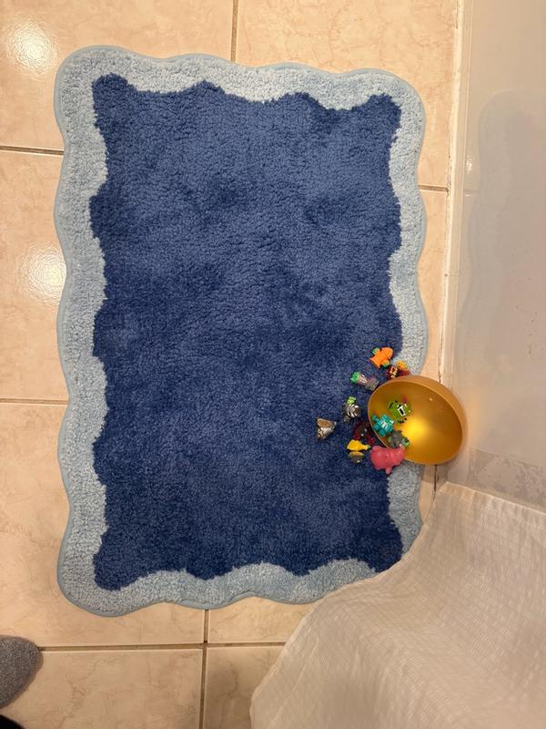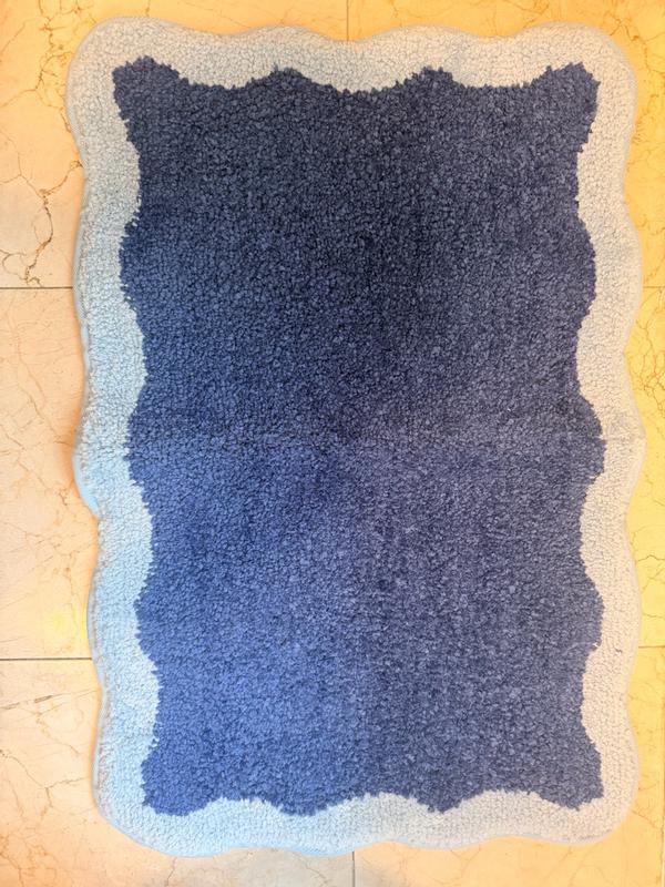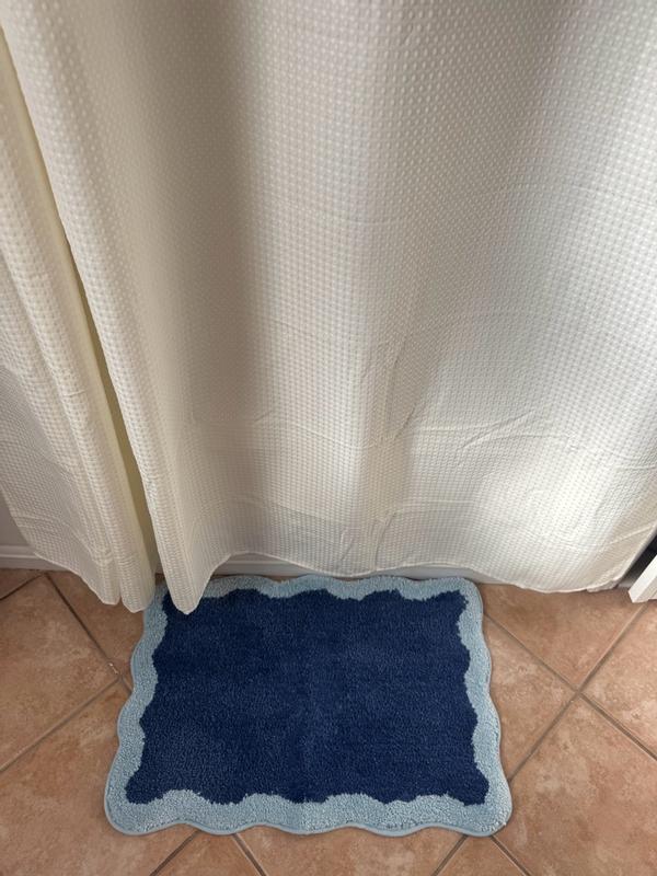 I really wanted to love this bath rug because the appearance is very cute—the blue color and scalloped tufted design look great in the bathroom and add a nice decorative touch. However, the rug is thinner than I expected, which affects both the feel underfoot and overall performance. Unfortunately, the biggest issue is that it has no grip on the bottom. When my son stepped out of the bath, the rug completely slid out from under him, creating a serious safety concern. Because of this, I won’t be using it in areas where someone would stand after bathing. While it’s easy to clean and visually appealing, I would only recommend it for decorative purposes or in low-traffic areas—not as a functional bath mat where slip resistance is important.