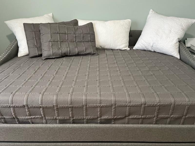 The VCNY Home 3-Piece Textured Quilt Set is a great choice for summer bedding. It has a clean, minimal look and is very lightweight, making it perfect as a coverlet. When you first unpack it, it may feel a bit stiff and rough, but after washing, it softens up and becomes extremely comfortable.