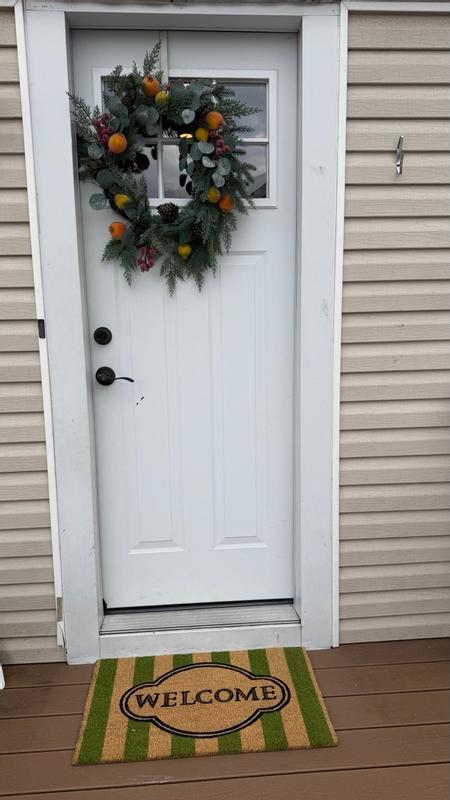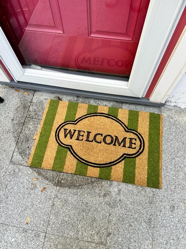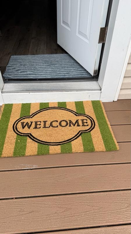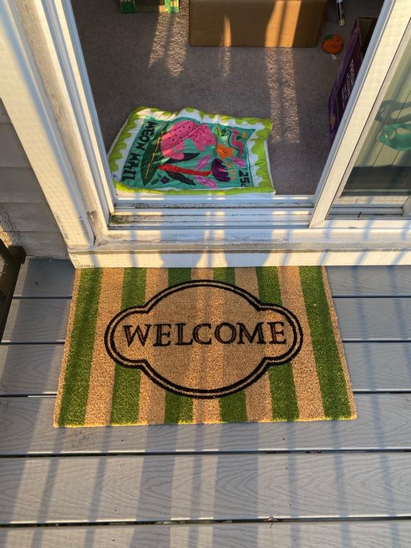 Welcome Stripe Coir Outdoor Doormat, 18" x 30"