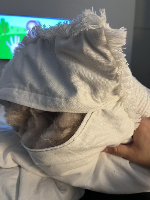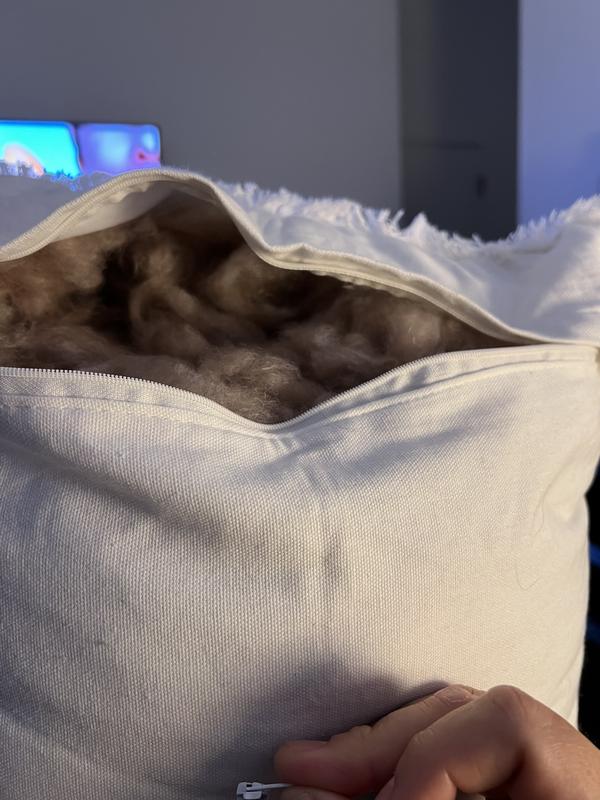 I purchased the pink. Fabric is pretty but not sustainable. I store the pillow covers only so I was really surprised at the shredded very fine loose stuffing. What a mess to remove! I doubt that the throw pillow would last through one cleaning. I love a bargain, but this is a disqualifier.