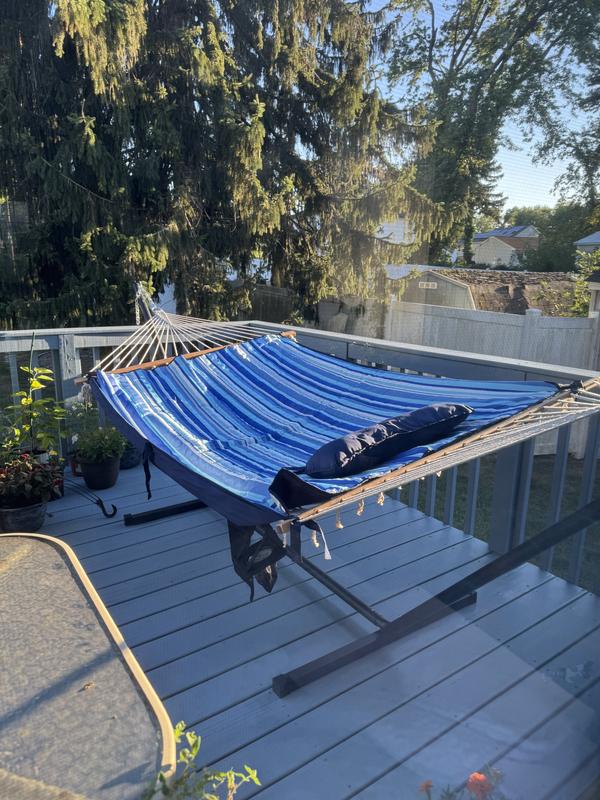 VEBREDAHammock Chair Stand Set Cotton Swing with Pillow Cup Holder Indoor Outdoor
