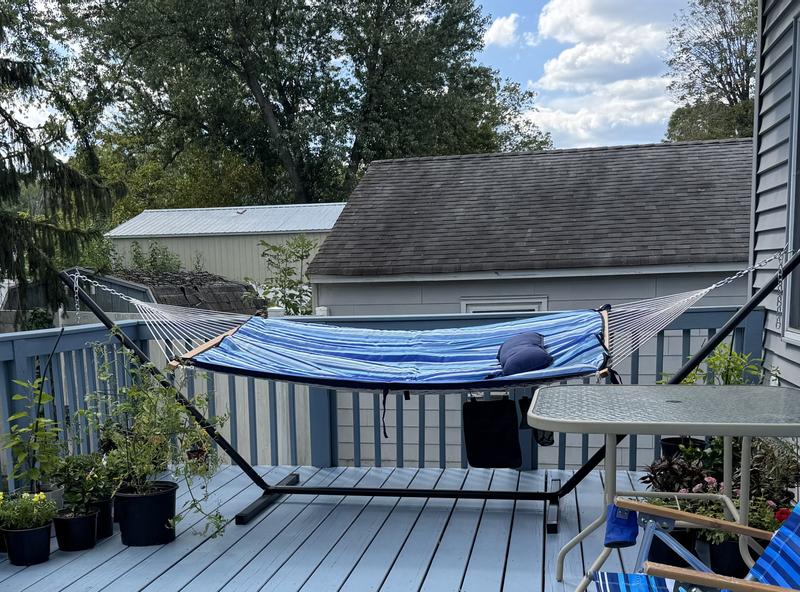 Unsafe. I was once thrown out of it while shifting to get comfortable, and hit my head on the iron foot stand on the left. Also difficult to get into and out of. I regret buying it and would have returned it if it wasn’t so bulky. It sits unused on my back porch and I don’t know how to get rid of it. Would not even give it away for free to anyone for fear they may get hurt. Do not recommend.