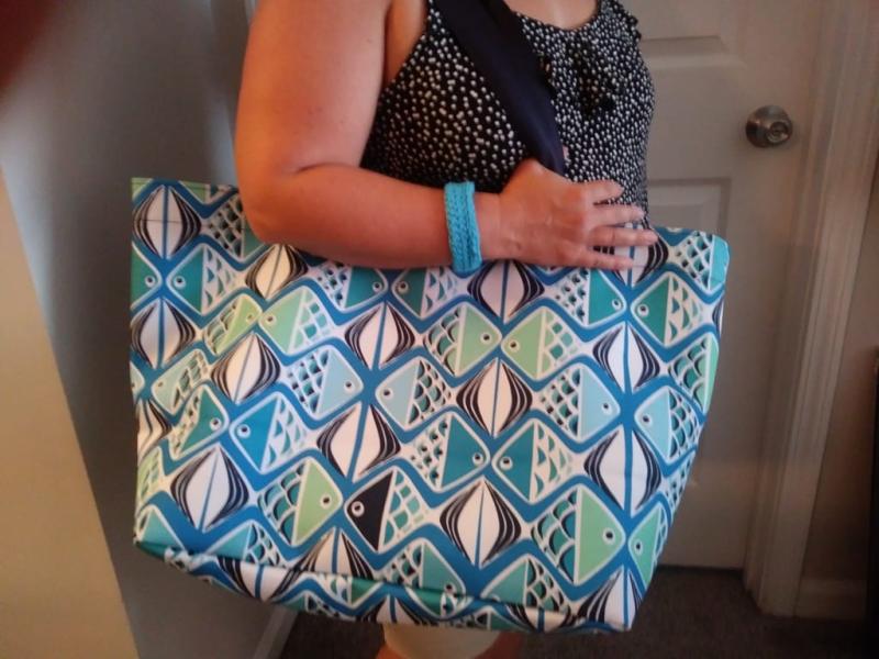 I LOVE this bag. I was looking for a large beach bag for my summer cruise and other summer beach vacations this 2019. With a husband and two teens I need lots of space to carry stuff. Can't wait to use! It's impressive. And, the fav nautical/ocean theme print makes it so amazingly beautiful!
