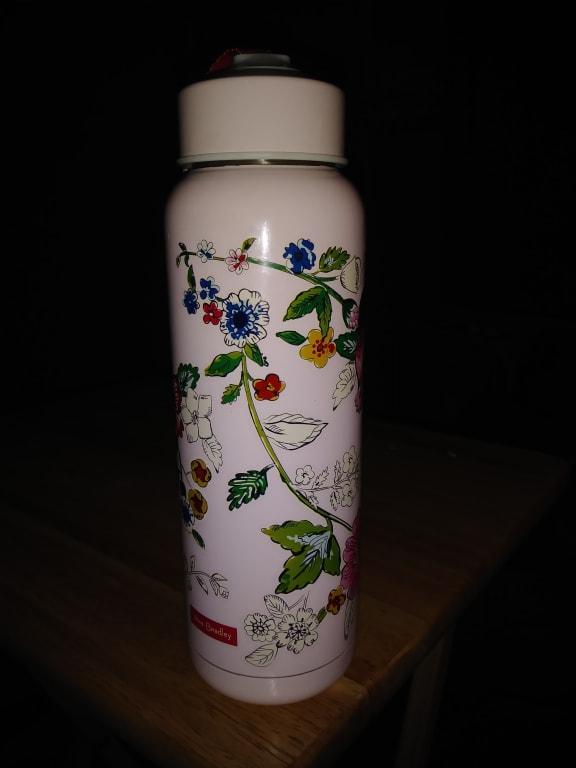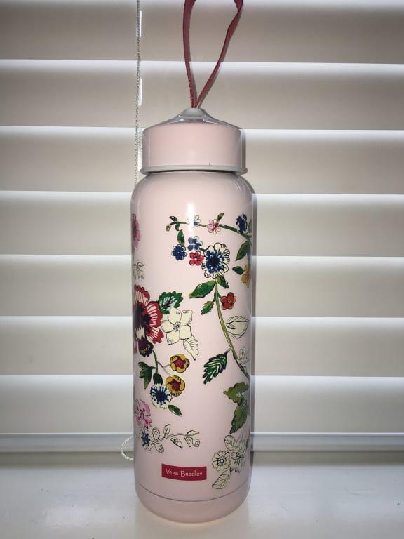 It's a great water bottle holds a full bottle and stays cool all day. So far have experienced no leaks. Strap on top is very useful. Beautiful patterns, and the bottle does no let water from cold beverages form on the outside.