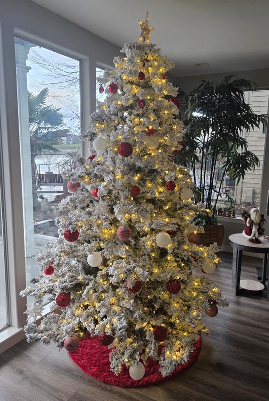This Flocked Alaskan is such a beautiful tree. The proportion is perfect. The flock is so real to what you see outdoors on a real tree. Lots of branches and tips to hang ornaments. I purchased the multi color with G50 bulbs. This tree stands as very unique and beautiful. So many compliments!!! I would definitely recommend this tree in any of the sizes as I have the 3ft ,4 1/2, 6 1/2, 7 1/2 and the 9. That's how much we love this specific tree.