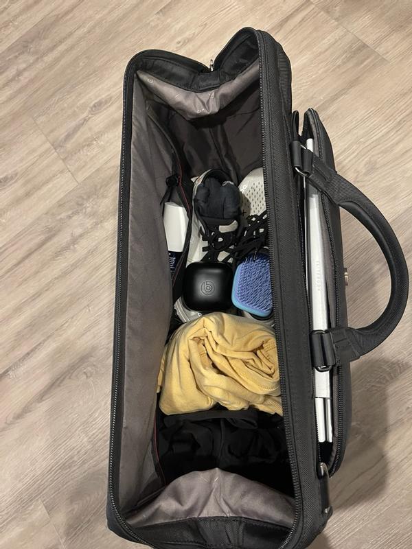 The Victorinox Werks 7.0 Weekender Bag is a must have for business travelers. This bag truly has it all. The front organizational pocket is surprisingly detailed the ideal spot to store your laptop, chargers, phone cables, and even a few project folders. It also includes a built in Tracksmart pocket designed to hold your personal tracking device, complete with a discreet internal tag so you always know where your bag is. The main compartment is structured to hold its shape and impressively wide and roomy enough for shoes, outfits, and more without feeling cramped. Inside, you’ll find two zippered pockets perfect for smaller essentials like socks, a sleep mask, or even the removable shoulder strap if you prefer using the handles. The bag can also compress down for lighter travel or easier storage, which is a huge plus. It features smooth, interlocking zippers yes YKK zippers! plus a convenient built-in sliding strap allowing you to easily slide it on your rolling in luggage. access items. The overall design is sleek, professional, and undeniably business ready. The only downside? Like any quality luggage, it can get a little heavy when fully packed. Not as comfortable as a rolling bag. But the build, the details, and the thoughtful design truly stand out. Victorinox clearly had travelers in mind when they created this. I’m finishing a novel right now, and I can’t wait to take this as my travel bag assuming my husband doesn’t steal it first. He’s already jealous.