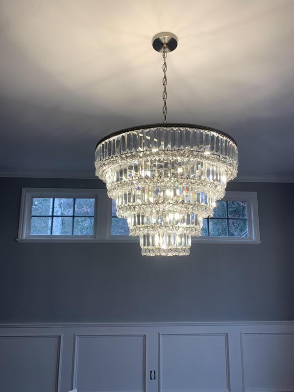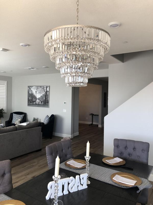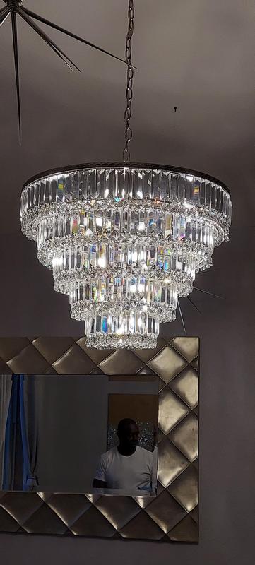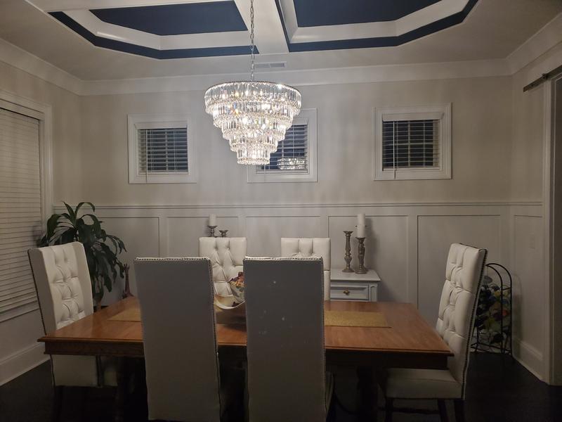 Gorgeous!! The perfect chandelier for my dining room. I received so many compliments. I had it professionally installed and made sure the electrician wore gloves while installing each crystal piece otherwise you will see finger prints. Highly recommend!!