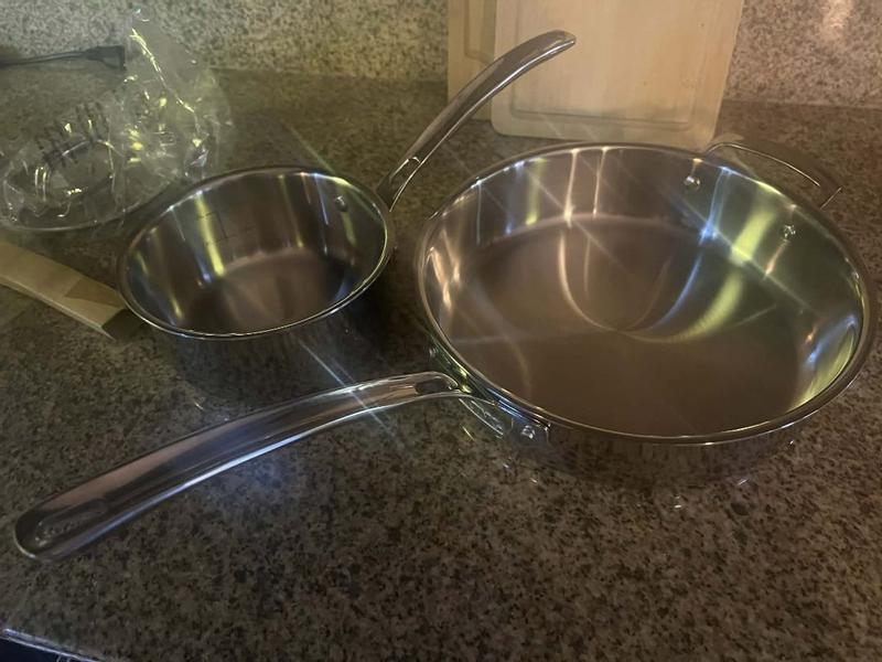Phenomenal set that covers almost all of your cooking needs and looks great on the stovetop. Each piece works well and is super sturdy. I love that if you use it properly, it’s also non-stick which is great because it eliminates the need to buy any nonstick pans that have potentially toxic coating. Only downside is for any of the frying or sauté pans, it tarnishes a bit after each use so it’ll take some extra steps for cleaning and maintenance if you want to keep pans looking shiny and new!