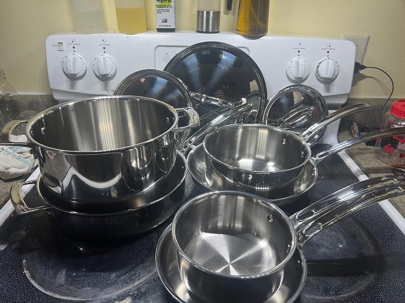 Viking 3-Ply Stainless Steel 10-Piece Cookware Set with Metal Lids is a wonderful investment for your kitchen. I've used these pots several times, and love the way they cook food. They heat evenly on my glass-top stove, and the handles for the pans and lids don't get hot. (They do get warm, but not anything that is untouchable.) They have heavy bottoms, and you can tell they are well-made, high-quality products. I would recommend these to anyone looking for quality stainless-steel cookware for their home, or as a gift to a family chef.