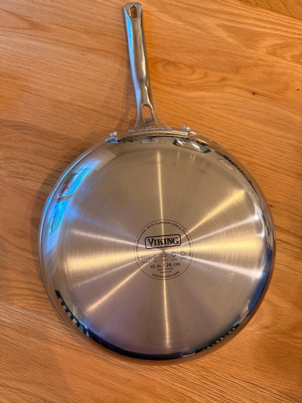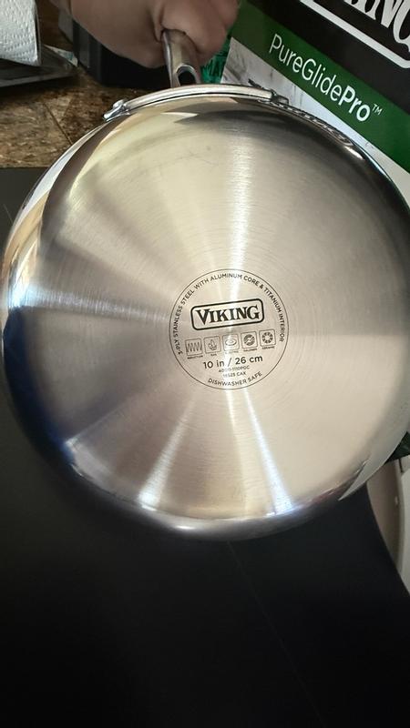I received the Viking frying pan as a Christmas gift and I love it. I was happy to replace my Tramontina pan which had become scratched and worn and therefore was no longer safe to use, The 10 inch Viking pan is easy to cook with and easy to clean.