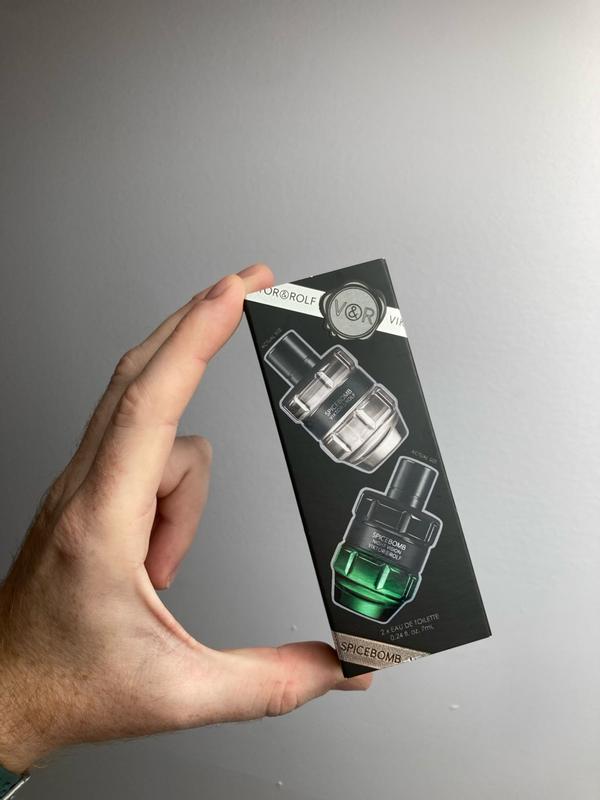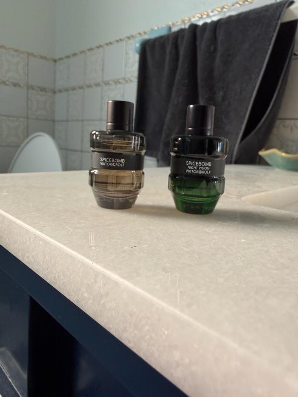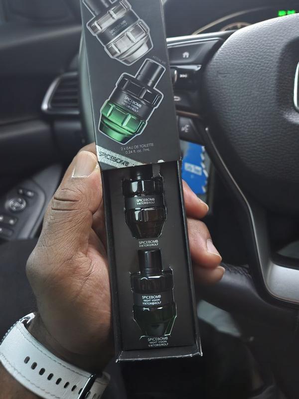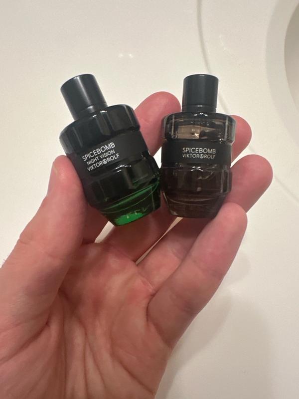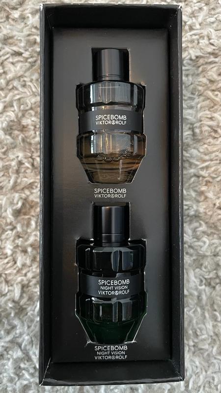 Great fragrance set that gives you versatility for the days and nights. The night vision is a fresh aqua scent that can truly be worn any time and be people pleasing. Spicebomb is also fresh but spicy as well. Great for the fall days and cool nights. A good sweater weather scent. Both project well for the first few hours and then become more of a skin scent. Bottles are conveniently small and fit in the pocket perfectly.