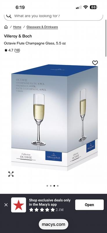 It’s supposed to be a set of 4 glasses (from pictures on Macy’s own website) received only 1 glass instead. Have called the customer service twice and they keep telling me it’s only 1 glass instead a set of 4. The glass itself is beautiful though.