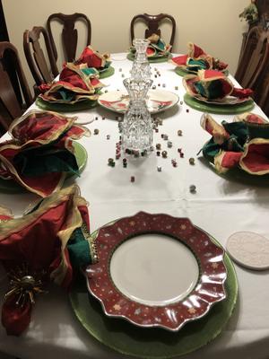 I was impressed with the Christmas china. When I found them on sale I bought them. They are absolutely beautiful and if you get the salad plates and the dinner plates they coordinate perfectly!