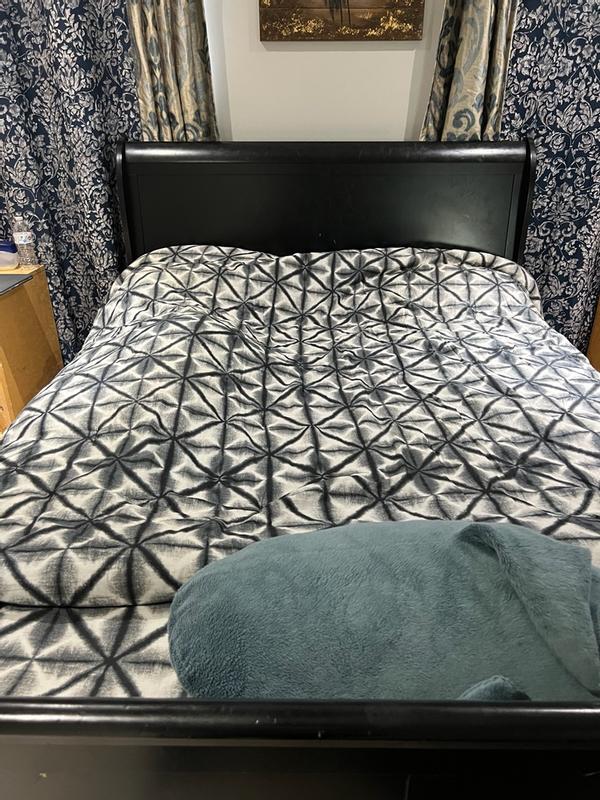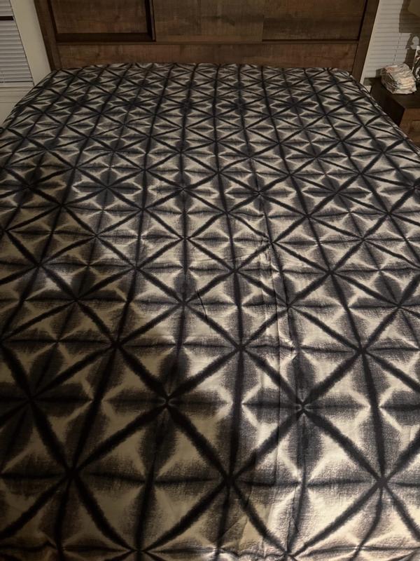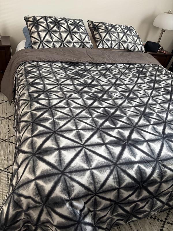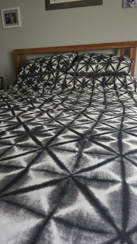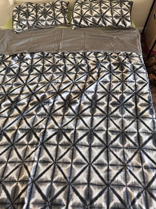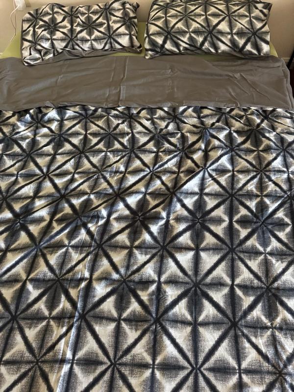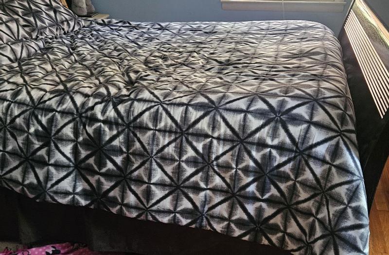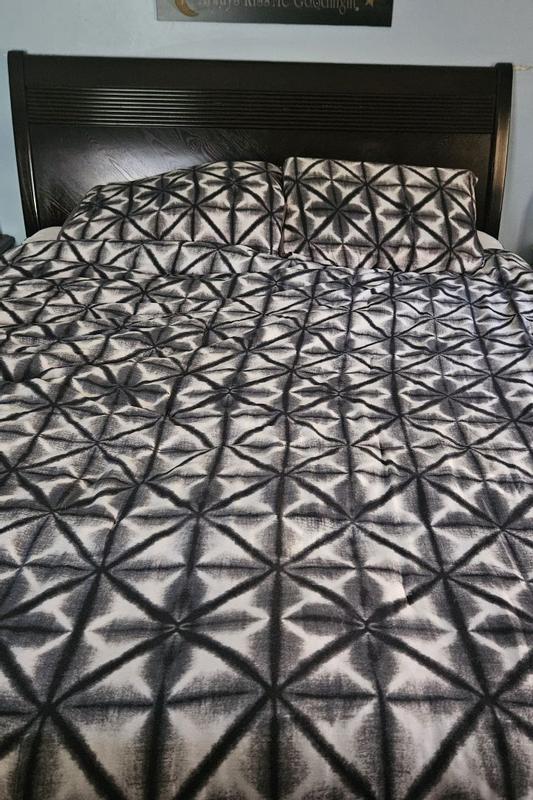 Interesting pattern. Still super comfy. Easy to store back as I don’t keep a queen size out unless family stays over. Fits easy without pulling too hard. Haven’t noticed any problems after 1 wash.