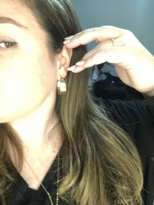 I am so obsessed with these earrings. I have been wearing them nonstop because they go with every outfit. the thickness is perfect to make them stand out but not overpowering. they are pretty comfortable to wear too