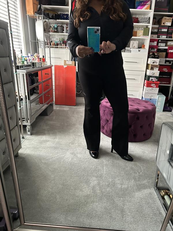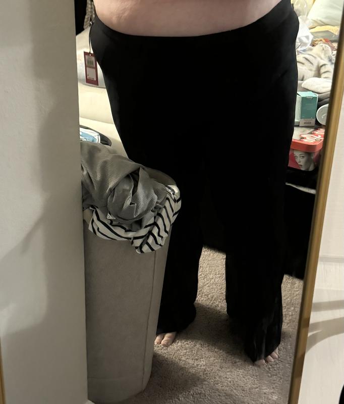 These pants fit and feel amazing! I absolutely adore how they aren't baggy or frumpy, giving me a polished look. They're perfect for everyday work or even dinner dates. Additionally, they can easily be dressed up for parties, making them versatile. These black slacks have a luxurious feel to them and the slight flare in the leg adds a fashionable touch. A little extra length. Good to wear with a nice heel. Overall, they are a fantastic addition to any wardrobe.