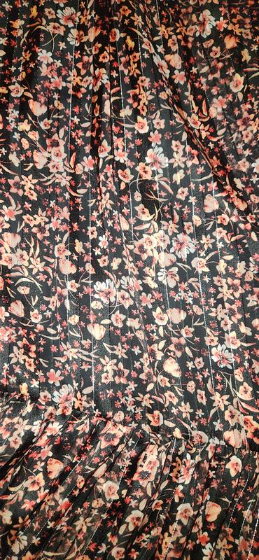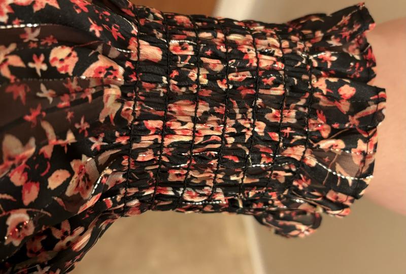 I loved all of the colors in this dress. I love the fabric and that the ling sleeves are very thin. The only negative that I have is that it runs small. I would definitely suggest sizing up a size or maybe two. All in all i would recommend this product.