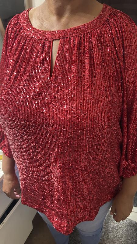 This is such a pretty top. Dressy. Looks so nice on and comfortable.