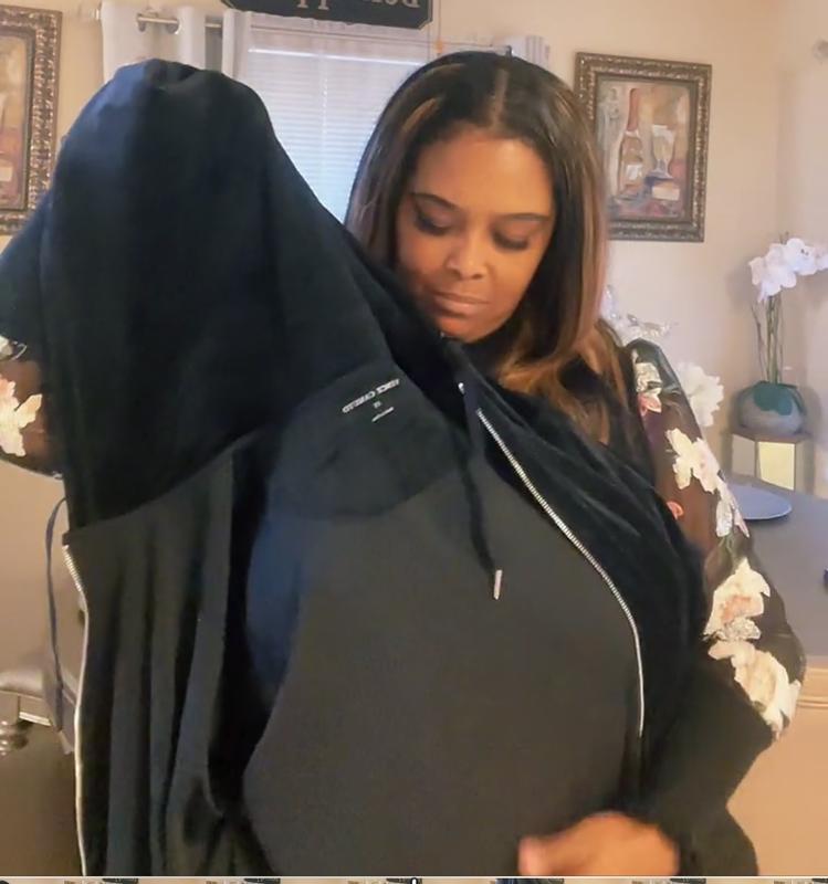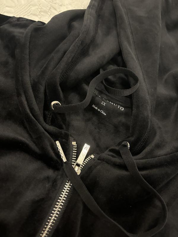 This jacket is nice loungewear. Very well-made the sparkle is just a nice little touch of pizzazz. Brings me back to win this was really popular about 20 years ago the black velour is fancy enough to wear over address as well if youāre going out would recommend runs true to size