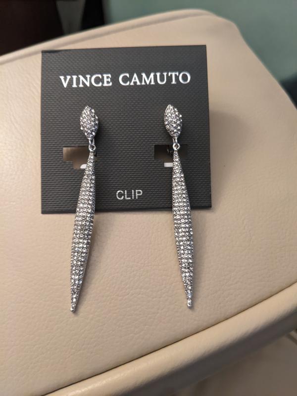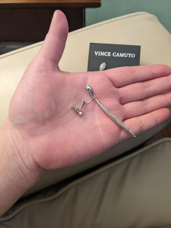 These Vince Camuto Silver-Tone Glass Stone Pave Drop Earrings are beautiful and very well crafted. You can tell by looking at them and feeling them that they are quality made. I do have my ears pierced so I just put the clamps over where the piercing hole was but I think it's a great option for those who don't have their ear's pierced. They are definitely for special nights out / special occasions. I would not wear these every day. The only reason I took one star off was because they are quite heavy so it feels like it holds me down. Otherwise, I would recommend them to others.