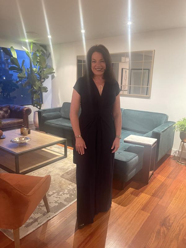 This jumpsuit is a nice fitting jumpsuit. It makes one look slimmer in it. It is also elegant and I ordered it in navy blue. I definitely recommend it’