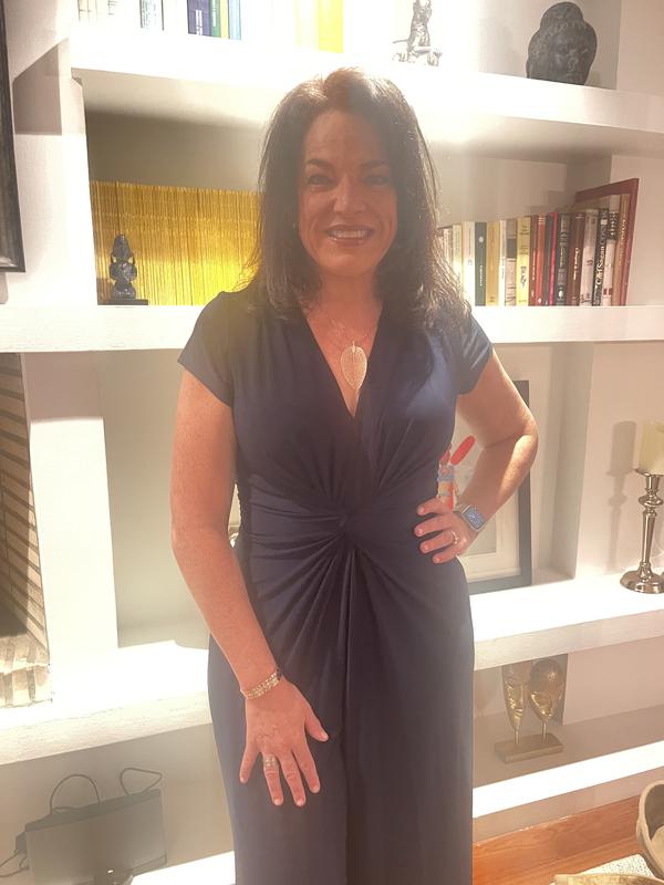 Great fabric, non wrinkle, low neckline, true to size. A bit long. I’m 5’5” and needed about 3-4” taken off length. Wearing to a cocktail party.
