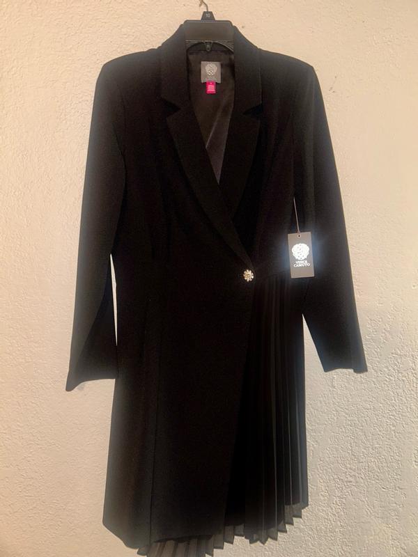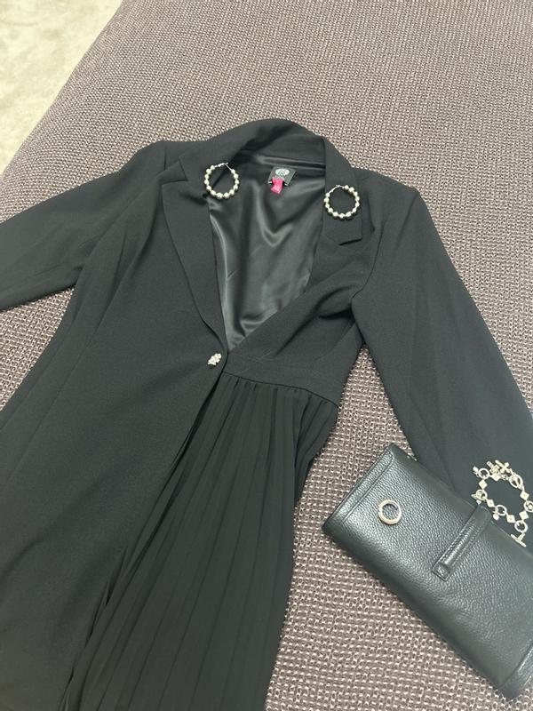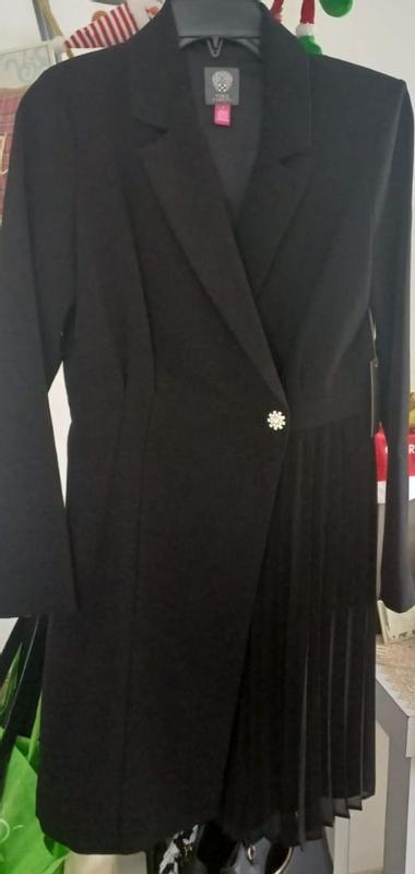 Vince Camuto black caught my eye with its sophisticated and timeless cut. The quality of the material is remarkable: the fabric feels soft to the touch, with an impeccable drape that flatters the figure without being too tight. It's the kind of garment that makes you feel confident and effortlessly elegant. The design is classic but with modern details that make it special—perfect for both a night out and a formal event. It is an excellent addition to any wardrobe. It combines style, comfort, and elegance in one piece.