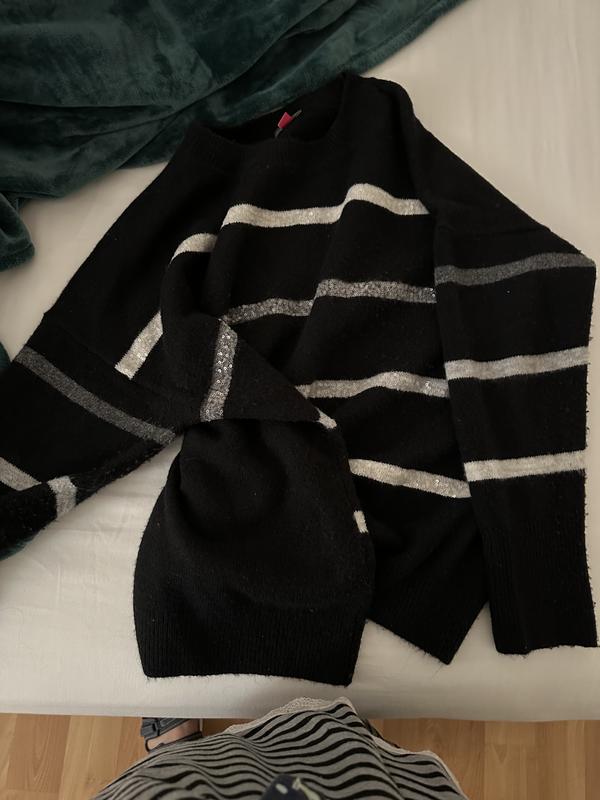 The quality and fit of this sweater isn’t even close to other sweaters in this brand. It looks cheap. It also runs large, so size down. I’m very disappointed, and will be returning it. Additionally, it arrived rolled into a ball in a plastic bag. When I opened it, it was covered with dirt spots and stains. It looks like it was dropped on a muddy garage floor. Even if I loved it, I would be returning it. This is probably the last online order I’ll be making with Macys.