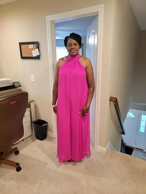 Although it looks pretty in the picture it does not look great on me. I purchased the pink color. It hangs like an overflow of fabric. It doesn't help that I am 5" 3" and swimming in it even with heels.