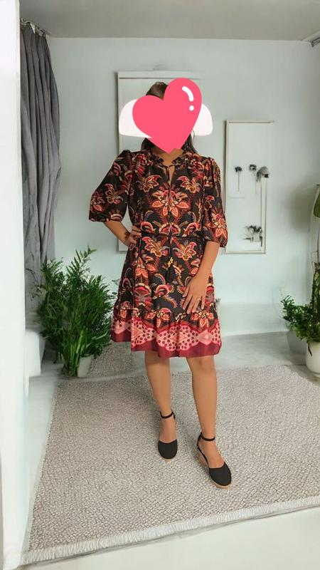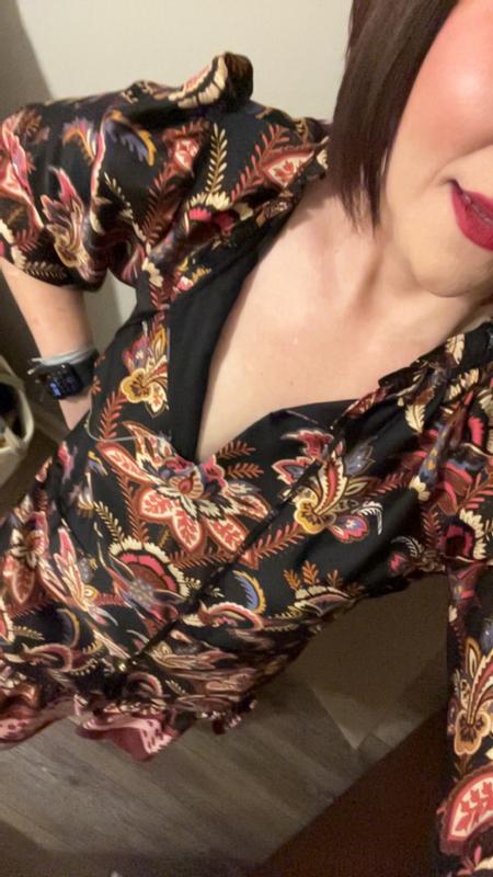 Even tho I choose the wrong size I absolutely love this dress! The floral print is stunning — a rich mix of colors that feels both bold and elegant. The twill fabric is soft and smooth, making it super comfortable to wear all day. The fit is flattering with its elastic waist and flowy silhouette, and the ruffled hem adds a fun, feminine touch. The balloon sleeves and tie neckline give it a perfect boho-chic vibe — stylish yet relaxed. It’s great for brunches, casual outings, or even dressed up with heels for a night out. Overall, it’s effortlessly elegant and moves beautifully. Definitely a wardrobe favorite!