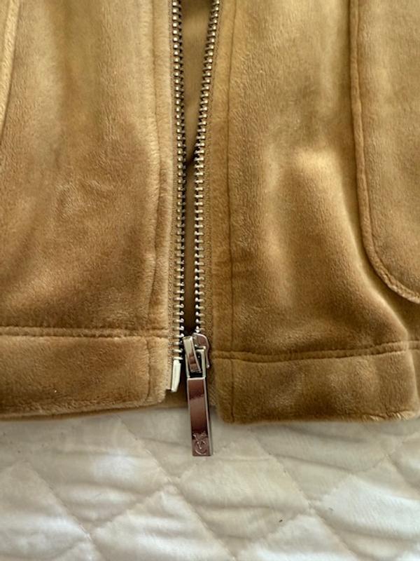 Reminds me of juicy brand jumpsuit. This jump suit is a brown/ camel color. Unfortunately I do not love the loose fit, also think it would look better with a hood. The sizing is larger than usually for a small.