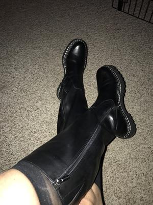 I’ve always been a big fan of Vince Camuto Boots, especially since they’re offered in my larger size 11’s or 12’s. I’d already purchased similar Looking Boots by Sam Edelman which were a Pull-On Style in both Black and Gray, however when I saw that these Beauties were on sale I couldn’t pass them up. I ordered the Size-11’s and once they arrived I tried them on and although a bit snug in the foot area I knew from past experiences that they’d soon loosen up which they did. They fit my calves perfectly zipping right up. The Leather Boots looked Rich and Expensive and I wore them to work with a pair of gray knee socks and an above the knee Black Dress. For the seven hours mostly on my feet waiting on customers at the clothing boutique they felt marvelous. Because they have a Unisex Look I’d recommend these to Women and Men both and especially Gurls Like me wanting Tall Stylish Rich Looking Boots.