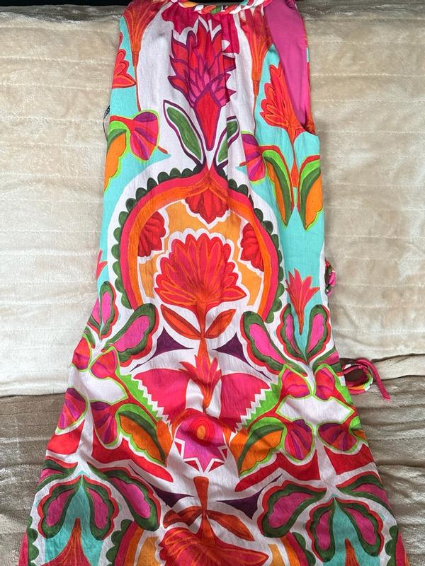 This dress is perfect for all summer occasions. The colors and floral design with the braided details make it a beautiful addition to my wardrobe.
