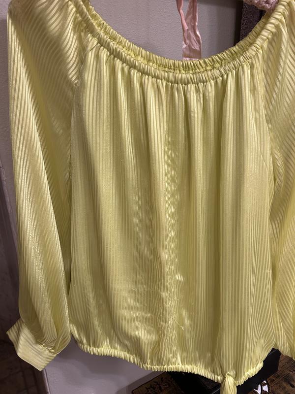 Women's Sheer Striped Off-The-Shoulder Long-Sleeve Tie-Front Blouse