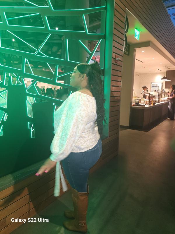 Can wear it on the shoulder for work and off for afterwards . So rich looking- great with by beige dress pants. I usually wear a large cause I have broard shoulders but the medium fit me great. Lots of compliments and I love the top