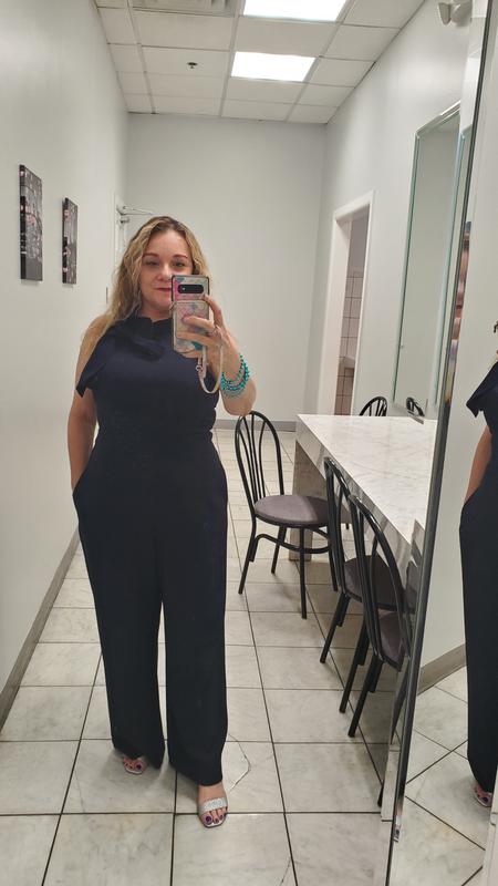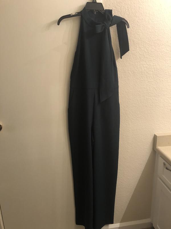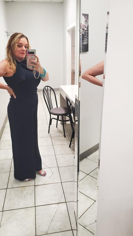 Absolutely adore this jumpsuit! The bow is super pretty and I love the halter neck style. It fits my body so nice, hugs the body in all the right places! The quality is amazing it is made of a nice thick material, but not too thick or heavy. Super durable as well! Love love love it!! I want it in more colors and will definitely be keeping my eye out for more like this from this brand!! The only “con” is that it’s too long for me but that is because I’m short (5’2), so I will definitely have it altered so I am able to wear it!