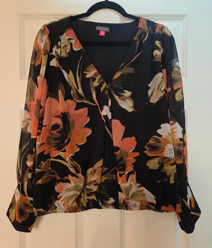 Very pretty print and style. But what they don’t say is the front is only secured at the top and is then open, unattached, down to the bottom hem. So depending on how you move you can give a free show. You need to either wear a cami under or do your own sewing to close it up. Having to do your own alteration on a pricey blouse is a lot to ask.