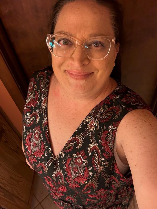 Love this Vince Camuto jacquard dress! Gorgeous pattern, comfy fit, and yes, pockets! Got it just in time for the holidays. Stylish, 4/5 stars!