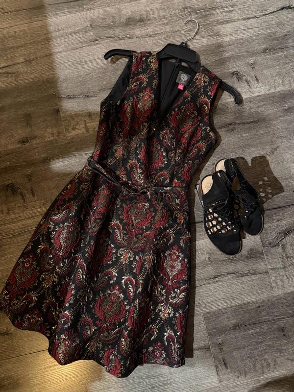 I will be wearing this Vincent Camuto dress for a New Year’s Eve date/dance. It is a Jacquard V Neck Fit And Flare With Self Belt dress. It fits true to size. It is lightweight and comfortable. It is easy to zip up in the back and the belt around the waist is very cute. This dress looks elegant and unique and it is made well. I like the design and it looks very professionally made and designer quality. I definitely recommend this dress to others. #influenster #macy’s #vincecamuto