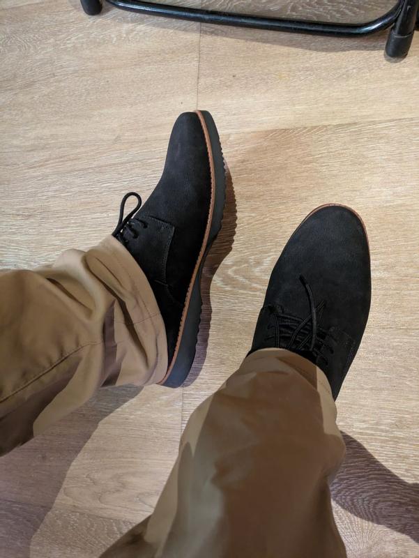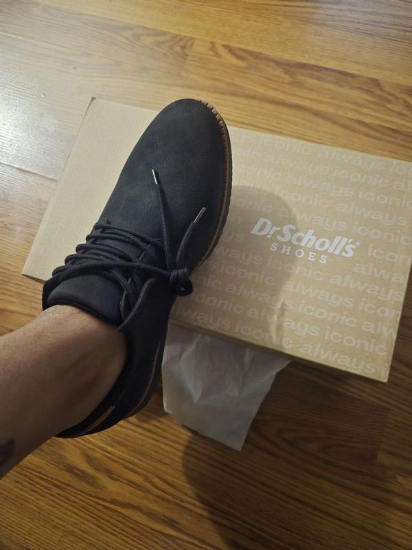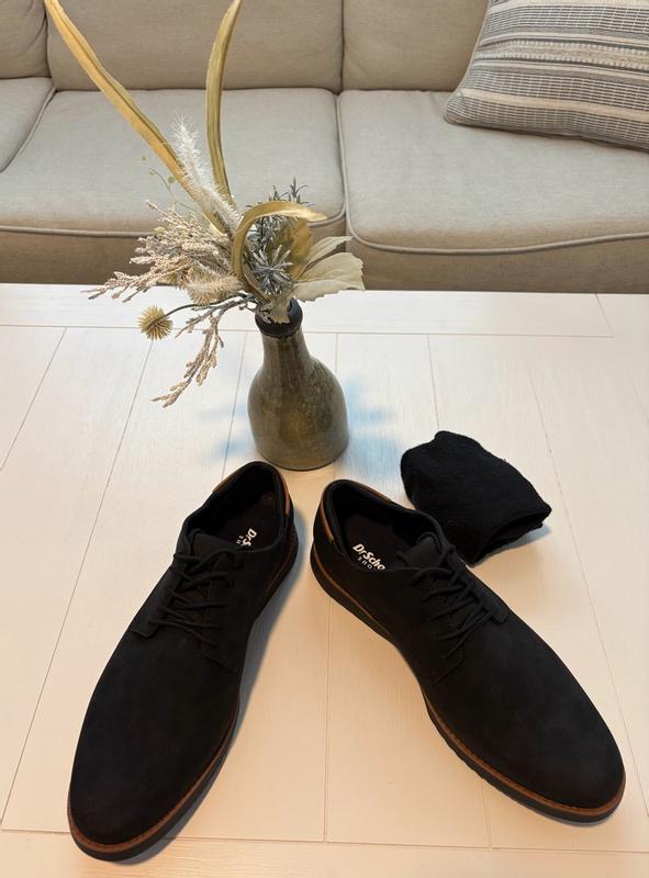 The weather was finally dry enough to wear these shoes out and about! My husband is really impressed. As someone with wide feet, it can be tricky for him to find shoes that are comfortable, supportive, and also attractive. These ticked all the boxes! He says they're comfortable without being too soft, so it feels like the support will hold up to many wears. The shoes look and feel well put together, and the soles have lots of excellent grip, so these will definitely have some staying power. He definitely plans to go back to Dr Scholl's when it's time for new shoes!