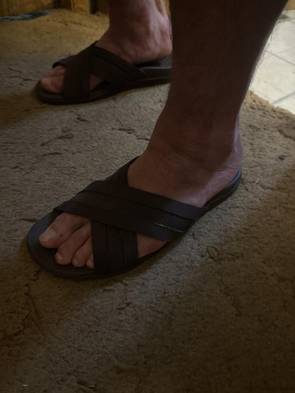 I’m a female but these men’s slides are the best slippers I found for my PF. They’re my house slippers. I am happy with the arch supports and comfort. I wish I could adjust the strap tightness but I’m used to them now.