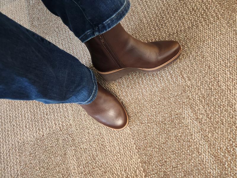 I purchased this boot in the fall and surprisingly, am still wearing it in the spring. Love the fact that it's weather resistant and has that extra lift. Comfortable right out of the box.
