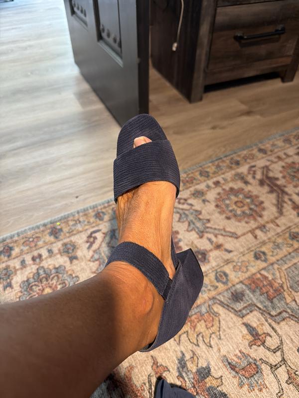Heeled navy sandal - so comfy! I love the velcro closure at the side. Who knew?!!