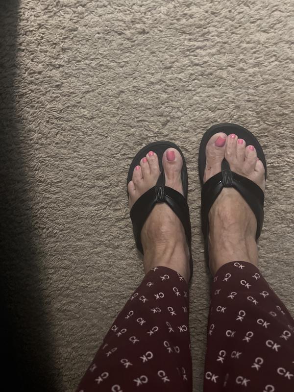 Very comfortable and supportive. I have tile floors throughout my home and wear all the time. I like the solid surface footbed; had the Bella toe sandals surface wore out, pulled off.